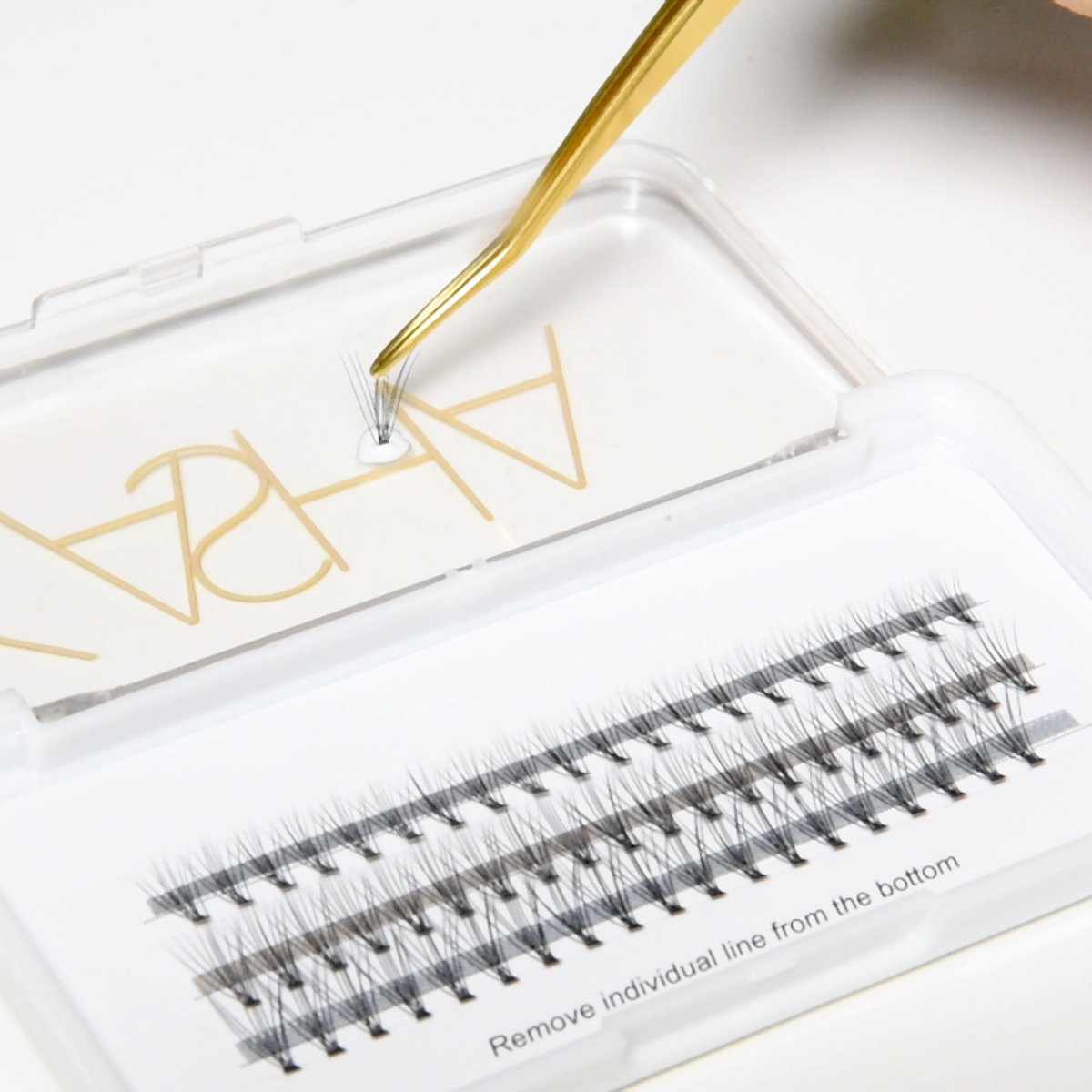 Apply each individual cluster directly to the lash line to achieve the most natural look. Push and adjust into position with your eyelash applicator. When choosing which length to use always keep in mind what look you want achieve. Always consider the length of your natural lashes, changes in length should be gradual across the lash line- remembering that lashes are naturally shortest at the inner corner and tend to get longer at the outer corners.